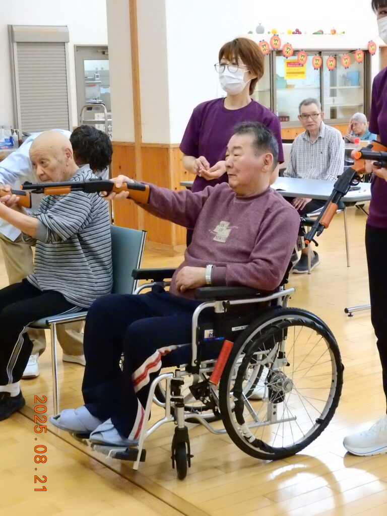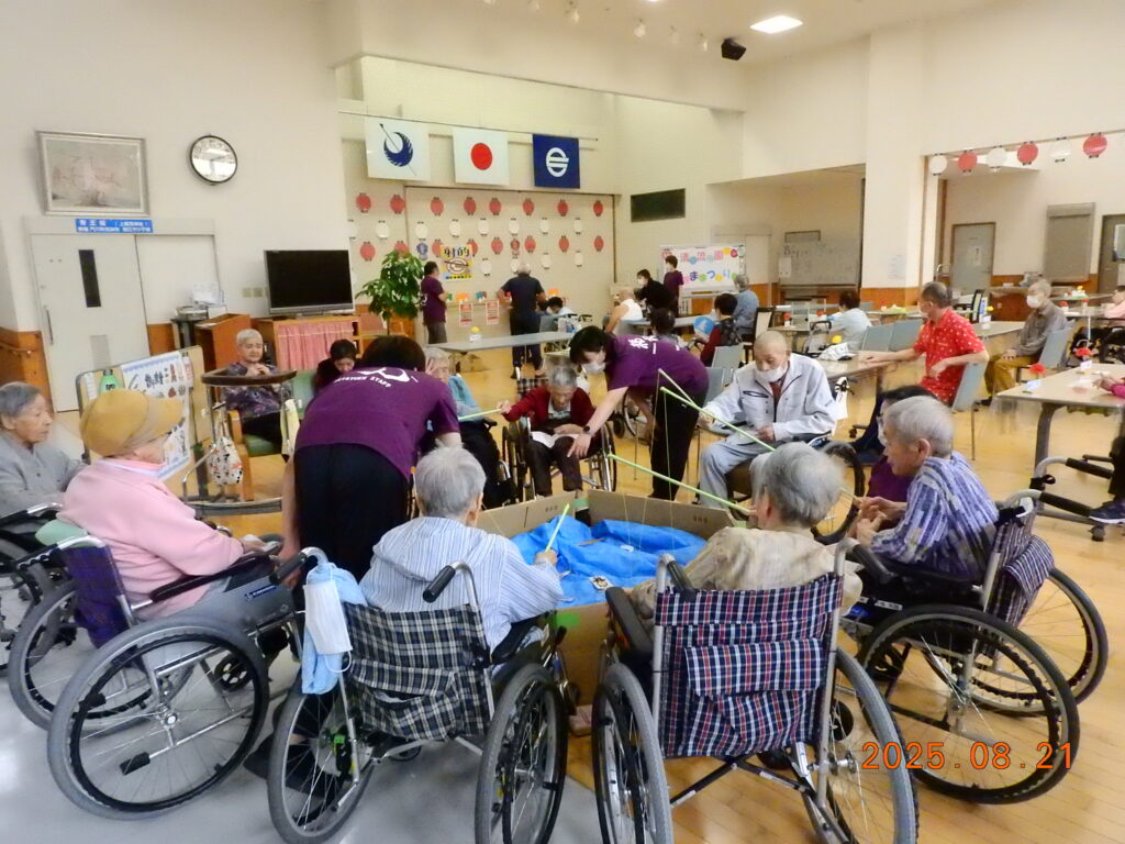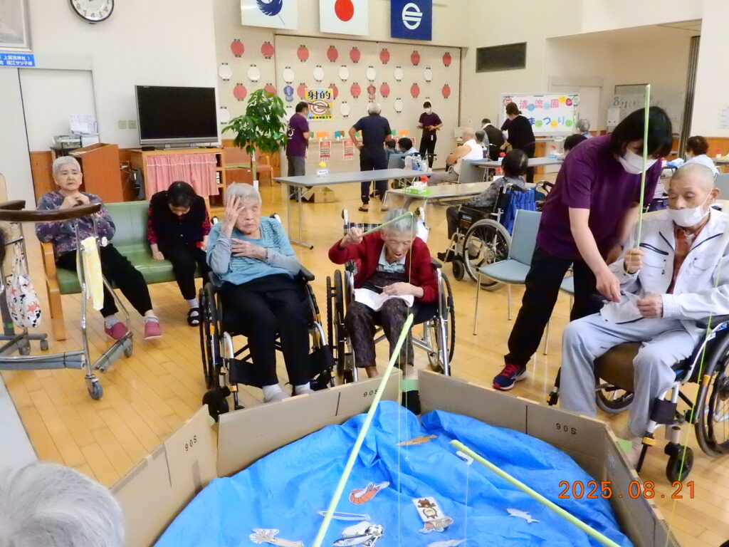 8月に園内におきまして夏祭りを開催しました。 射的や魚釣りなどを楽しんでいただいた後、皆さんお楽しみのタコ焼きの他、お子さんにも大人気(大人の私も大好きですが・・・)のチョコバナナもあり、皆さん美味しそうに食べておられました!
