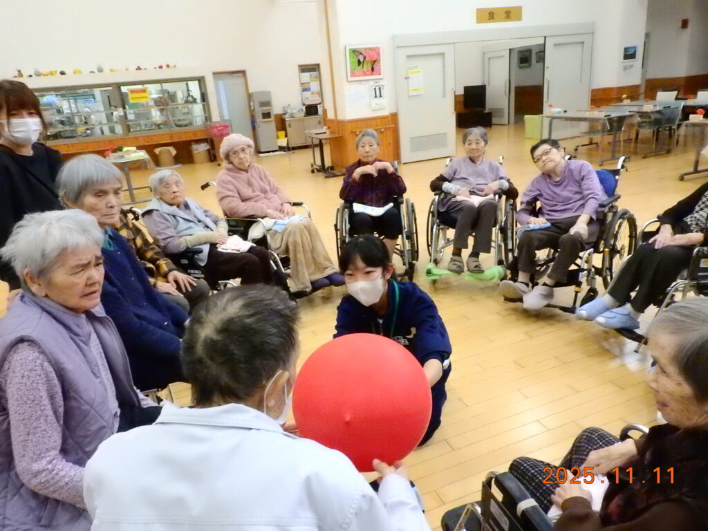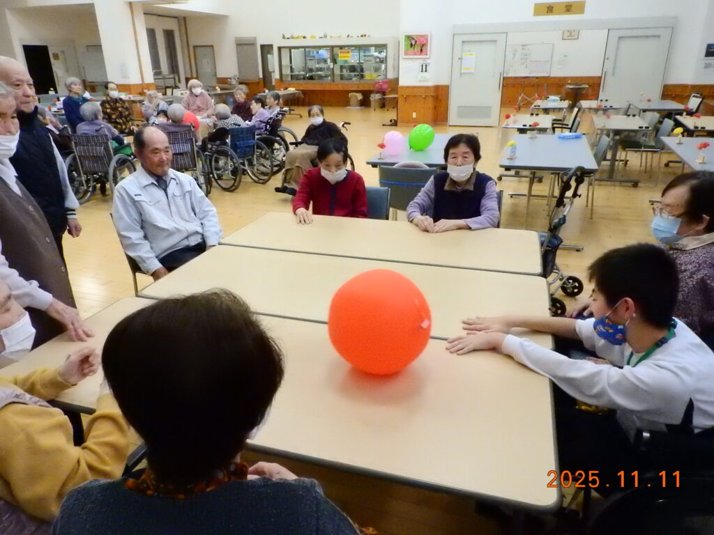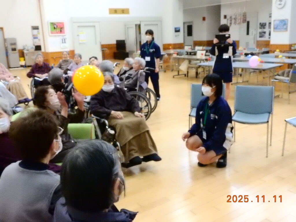 日之影中学校より生徒さんに職場体験ということで来ていただきました。やはり、明らかに私たち職員といる時よりも楽しそうです。お孫さんやそれぞれの子供さんの事などを思い出されるのだと思います。また、将来、この生徒さんの中からお一人でも介護等に関わる仕事に就いていただけたら幸いです。あっという間の時間でしたが、楽しいひと時を過ごされました。学校長をはじめ、今回の準備などをして頂きました担当の先生方ありがとうございました!来年もお待ちしております。